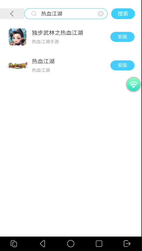 4.搜索游戏名称,快速找到《热血江湖》手游,选择需要的版本,点击即可一键下载安装。