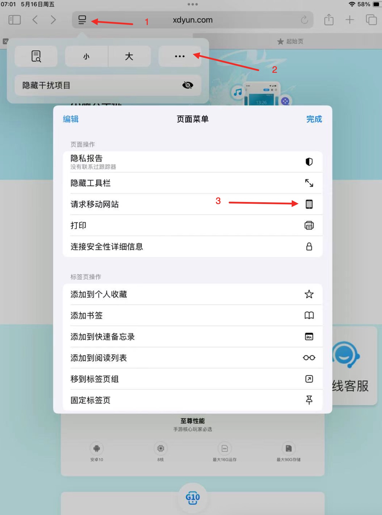 - 转到移动端方法:找到右上角更多选择,在现在右边页面菜单,点击打开页面菜单,再选择“请求移动网站”
