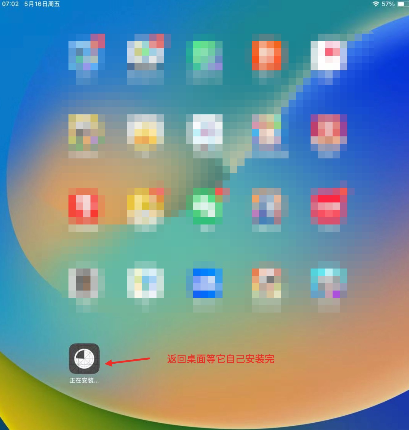 - 选择“安装”后,返回桌面上就可以看到应用正在安装中,耐心等待安装完成,进入下一步“信任企业”