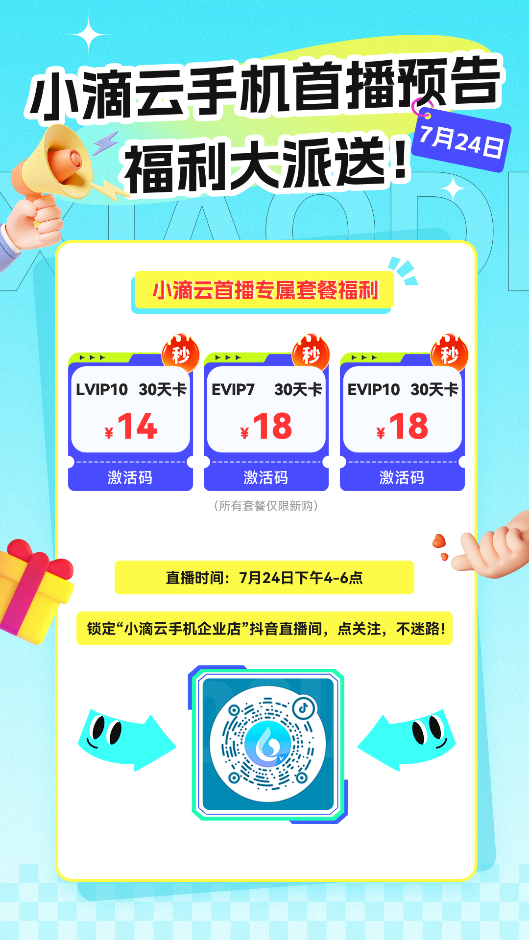 直播入口:抖音,搜索关注“小滴云手机企业店”进入直播间“
