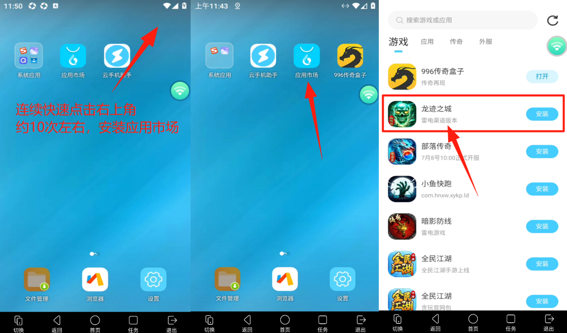 - 运行指定游戏:进入小滴云手机内的应用市场。搜索“龙迹之城”找到并下载指定雷电版本,安装成功启动游戏并进入游玩。