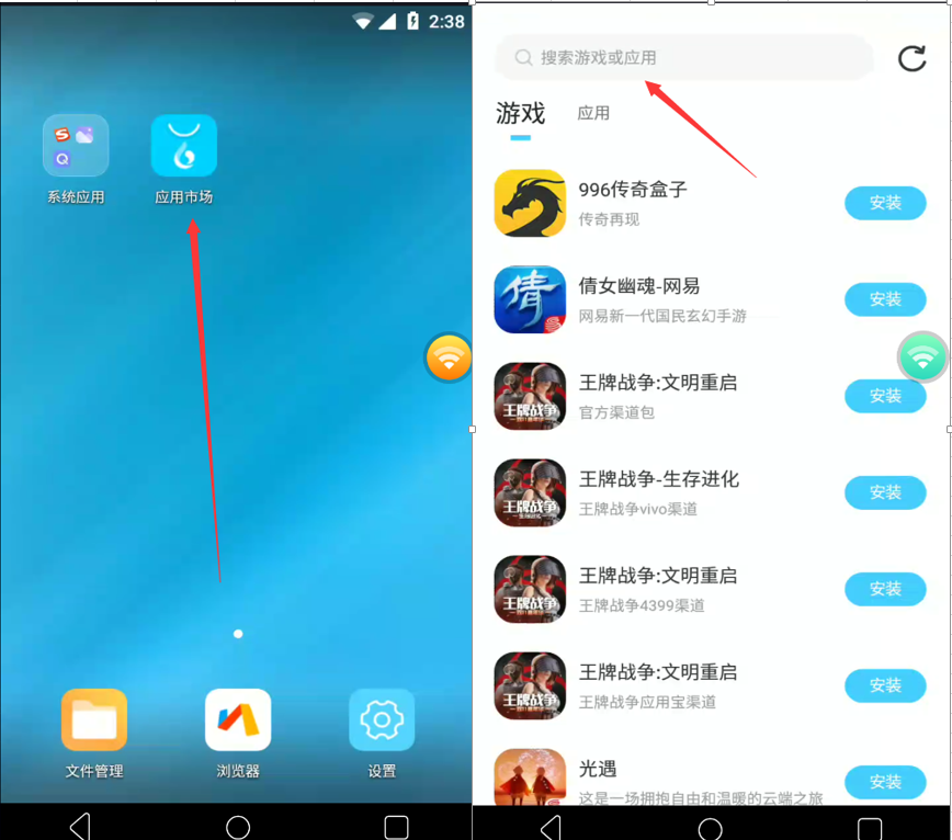 方法一:在进入云手机后,进入游云端应用市场或浏览器,搜索并下载《云上契约》。