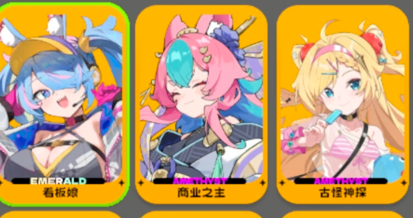看板娘-米米、商业之主-帕露南、古怪神探-芬妮、暗影忍者-小町、游戏大师-恋、命运少女-蓝海晴、史莱姆-璐璐、风水师-姬梦朝、暗区少主-阿尔、新人调查员-凛、超天酱-超绝最可爱天使酱、吉尔-吉尔·斯汀雷。